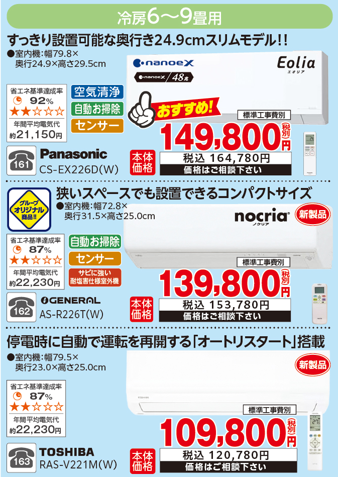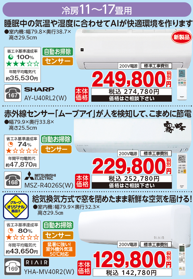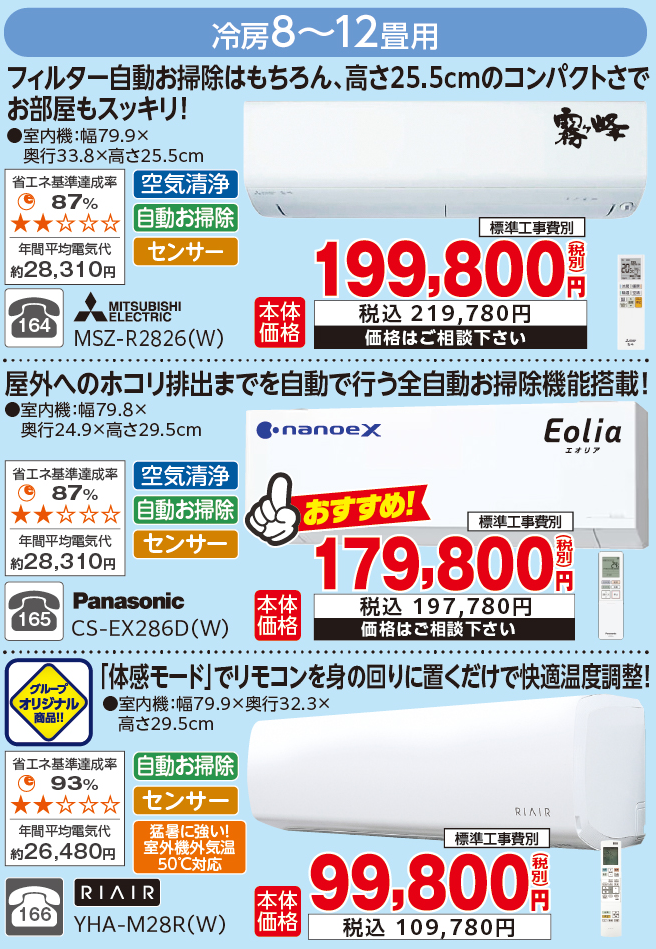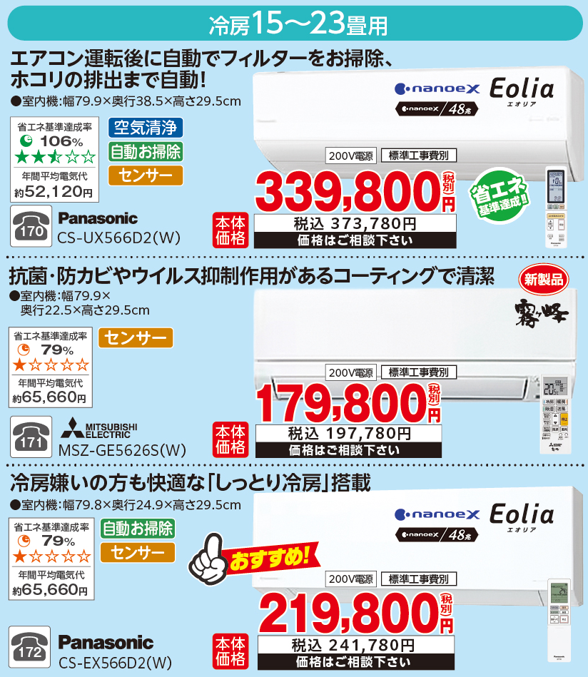 今月のおすすめエアコン(高機能商品&特価商品)